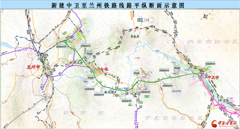 據了解,銀蘭高鐵中蘭段經白銀市靖遠縣北灘鎮(zhèn)進入甘肅境內,向南途經白銀市平川區(qū)、白銀區(qū),蘭州市皋蘭縣、蘭州新區(qū)及永登縣,新建北灘站、平川西站、靖遠北站、白銀南站、秦王川站5座車站。線路向西連接中川城際鐵路進入蘭州西客站,向北直達中川機場并連通蘭張三四線,可經由武威、金昌,在張掖與蘭新高鐵連通,向東直通銀川,可轉向慶陽至西安,構建了蘭州到慶陽、平涼等地區(qū)的高鐵新通道。