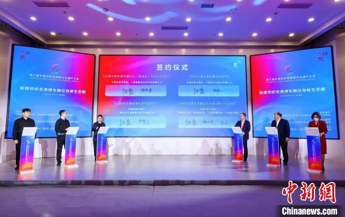 會上,嘉賓們共同見證了共建中國紡聯(lián)非遺辦長三角地區(qū)工作站合作簽約、紡織非遺出版?zhèn)髅胶献骱灱s、紡織非遺標(biāo)準(zhǔn)化合作簽約、紡織非遺京津冀協(xié)同發(fā)展戰(zhàn)略合作簽約、昆曲《御題棉花園》項目啟動簽約、我家的毛巾會唱曲兒授權(quán)合作簽約、共建河北大學(xué)高陽文化研究中心合作簽約等多項合作的達成。舉辦了中國紡織非遺推廣大使“推進城鄉(xiāng)融合發(fā)展、全面實現(xiàn)鄉(xiāng)村振興”倡議行動。
