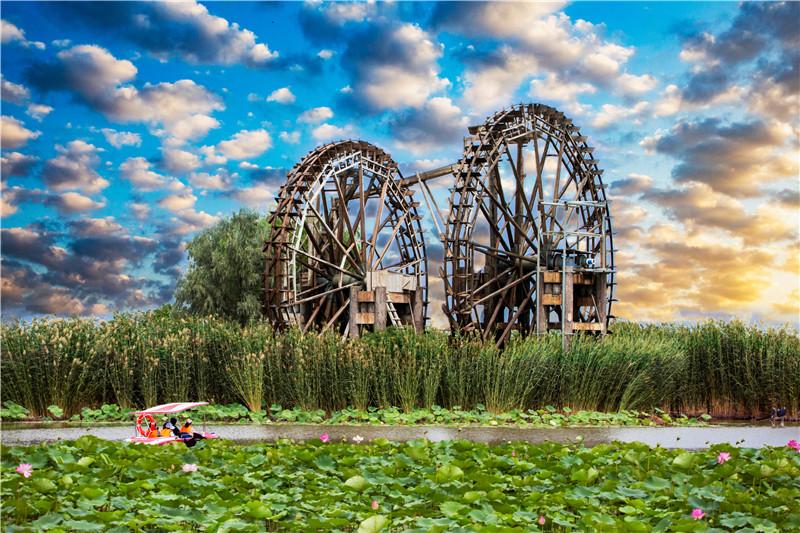 銀川市濕地(包含河流水域)面積531平方公里(80萬(wàn)畝),占市域土地總面積7.65%,人均濕地面236平方米,是全國(guó)的6倍,市區(qū)濕地率達(dá)到10.65%,濕地保護(hù)率達(dá)到78.5%,2018年被評(píng)為我國(guó)首批“國(guó)際濕地城市”。鳴翠湖位于興慶區(qū)掌政鎮(zhèn),總規(guī)劃面積8840畝,是歷史上銀川“七十二連湖”重要組成部分,是中國(guó)西部地區(qū)和黃河流域首家國(guó)家濕地公園、“國(guó)內(nèi)首個(gè)立體生態(tài)荒漠化濕地成功修復(fù)力作”、國(guó)家水利風(fēng)景區(qū)、國(guó)家4A級(jí)旅游景區(qū),享有“中國(guó)最美濕地公園”“中國(guó)生態(tài)保護(hù)最佳濕地”等美譽(yù)。銀青公路穿湖而過(guò),將其分為南北兩湖,其中:南湖為濕地生態(tài)保護(hù)核心區(qū)占地3845畝,只進(jìn)行濕地保護(hù)與恢復(fù)性建設(shè);北湖占地4995畝,進(jìn)行濕地景觀建設(shè)和濕地生態(tài)旅游項(xiàng)目的開發(fā)經(jīng)營(yíng)。鳴翠湖湖泊面積占湖區(qū)面積的80%,景區(qū)生物多樣性富集,有維管植物109種、水生浮游植物69種、鳥類97種。湖光瀲滟、蘆葦蕩漾、楊柳依依、水車吱吱、魚翔淺底、百鳥鳴翠,遠(yuǎn)望水鷺雙飛起,近看風(fēng)荷一向翻;接天蓮葉無(wú)窮碧,映日荷花別樣紅,在我國(guó)西北干旱地區(qū)和黃河沖積平原區(qū)域具有典型性和代表性。