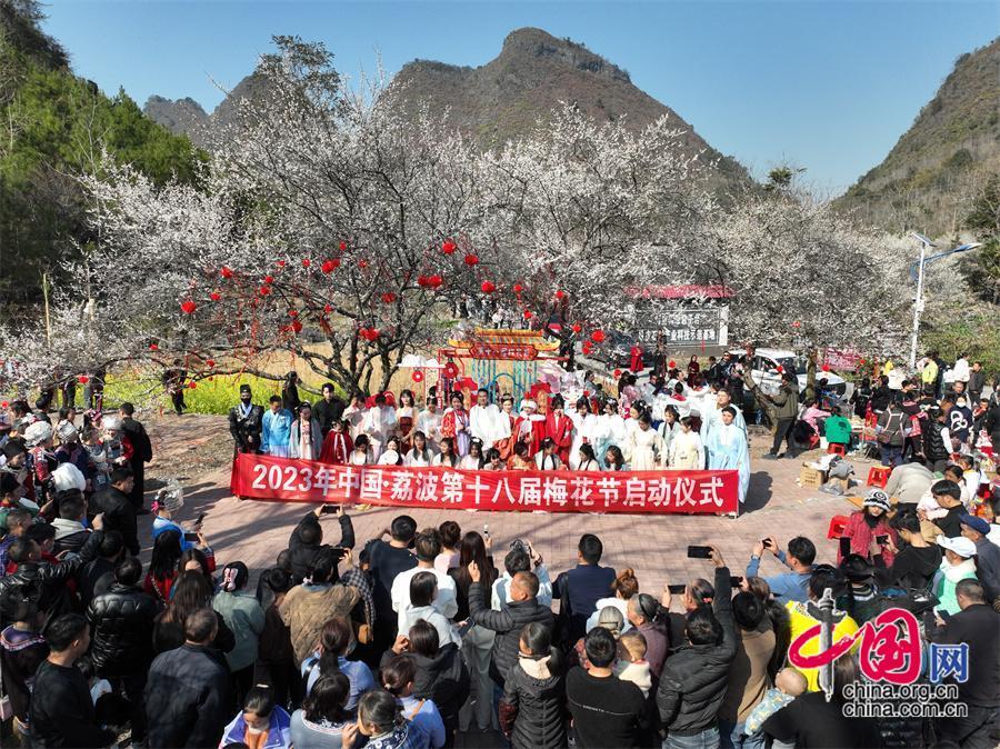 眼下,荔波縣萬畝梅原景區(qū)已經(jīng)進入最佳觀賞期。1月30日,2023年中國·荔波第十八屆梅花節(jié)開幕,八方游客齊聚荔波縣黎明關(guān)水族鄉(xiāng)萬畝梅原景區(qū),聽曲、賞梅、品茗、觀演出,共賞梅原盛景。
