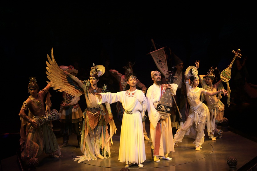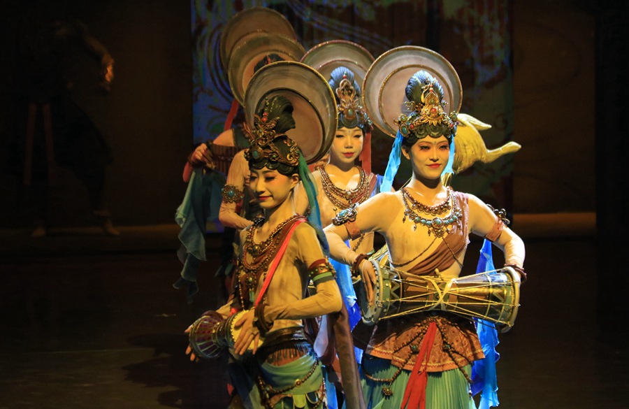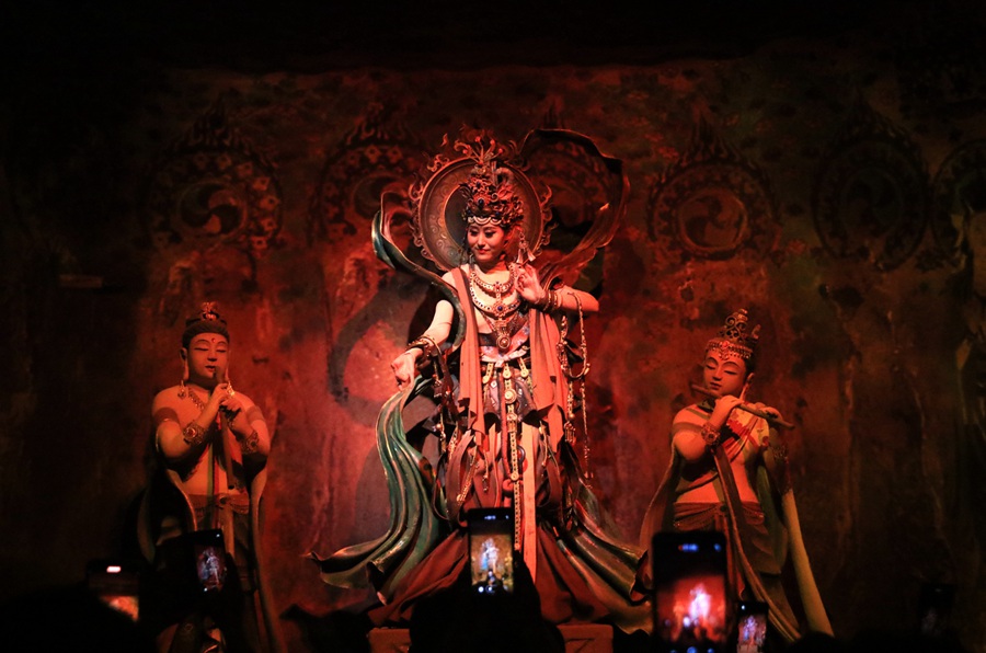 大型洞窟式沉浸體驗(yàn)劇《樂動敦煌》演出現(xiàn)場。張曉亮攝
