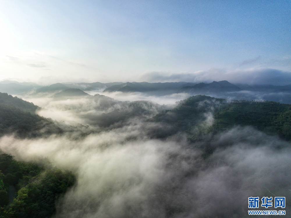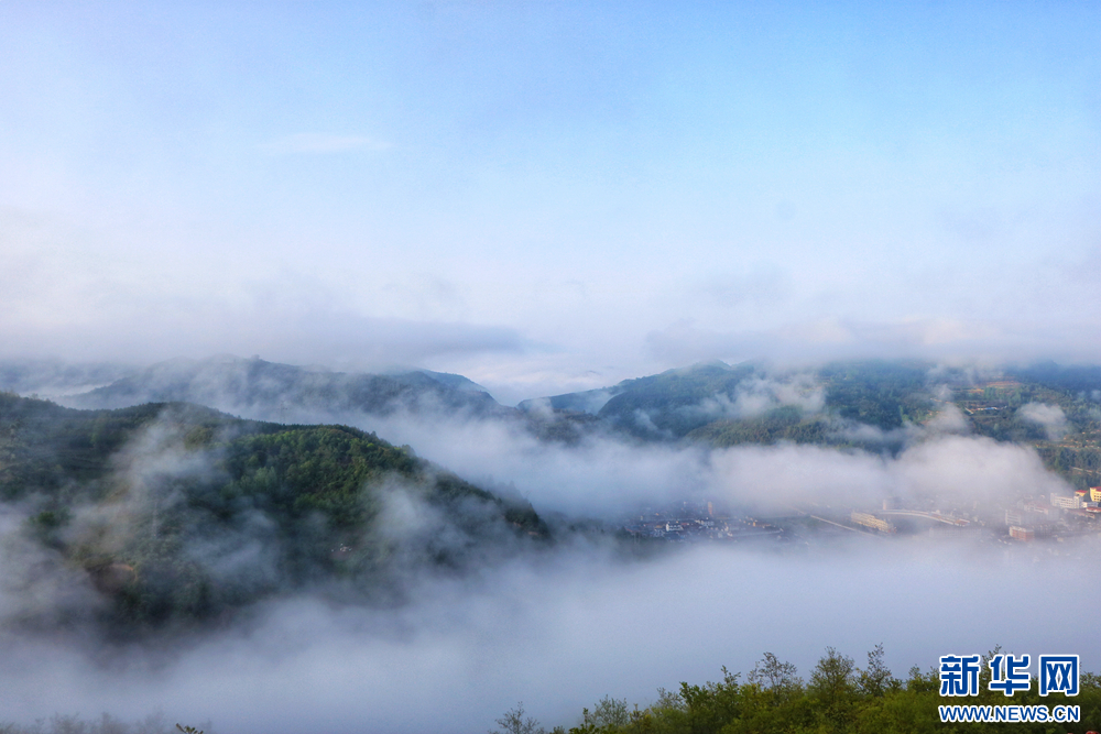 近日,甘肅省隴南市兩當(dāng)縣上空云霧繚繞、煙波浩渺,縣城、山峰在霧海中若隱若現(xiàn),陽光從云霧間掠過,勾勒出一幅幅如夢如幻的美麗畫卷。新華網(wǎng)發(fā)(楊曉 攝)