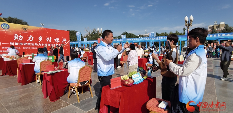 品味張掖好物,助力鄉(xiāng)村振興。在全國科普日甘肅主場活動之一的張掖市農(nóng)技協(xié)助力鄉(xiāng)村振興直播大賽現(xiàn)場,臨澤縣奮進(jìn)葡萄種植農(nóng)民專業(yè)合作社負(fù)責(zé)人賈宏福運(yùn)用手中的“新農(nóng)具”,通過網(wǎng)絡(luò)直播的形式,向網(wǎng)友們推介自產(chǎn)的葡萄,并向大家分享科技助農(nóng)為他帶來的喜悅。