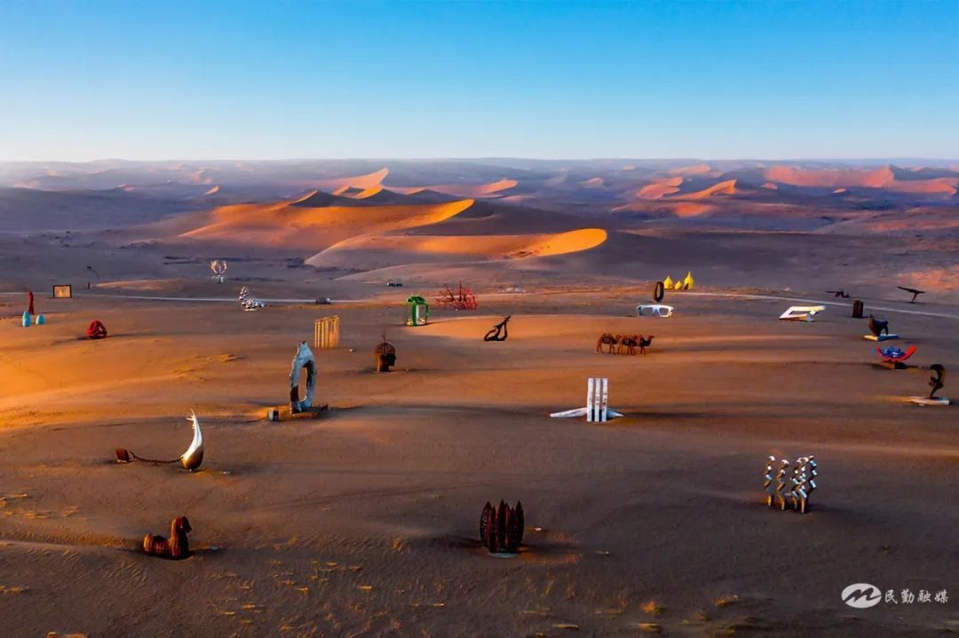 民勤蘇武沙漠景區(qū)絕對是網紅般的存在。刷屏各平臺它已成為??停衬袼車H創(chuàng)作營是大家最愛的拍照打卡地,132座不同材質、不同風格的藝術佳作,如一顆顆璀璨明珠飄落瀚海,與藍天白云、金色大漠完美融合、相映成趣,超級出片。