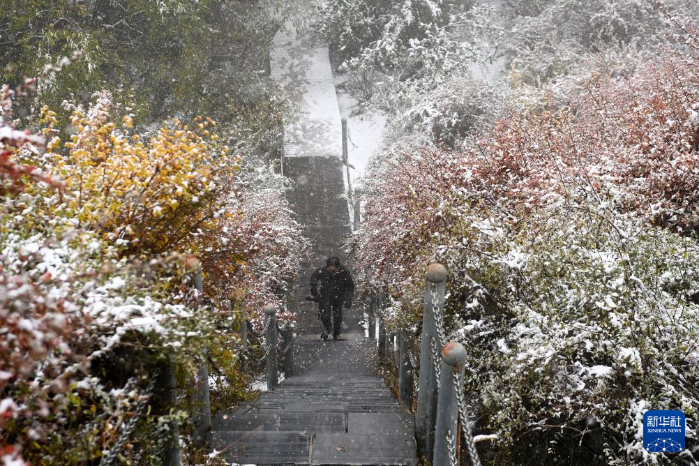 金秋時(shí)節(jié),甘肅省張掖市肅南裕固族自治縣境內(nèi)的祁連山脈迎來一場降雪,云杉翠柏與皚皚白雪相映成趣,美不勝收。