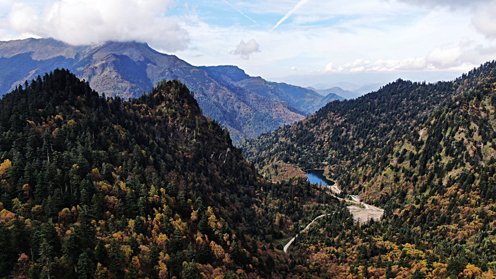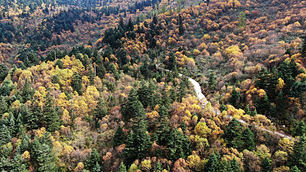 金秋時節(jié),甘肅省隴南市宕昌縣官鵝溝森林公園層林盡染,斑斕如畫,吸引了不少游客前來游玩。新華網發(fā)(劉輝 攝)