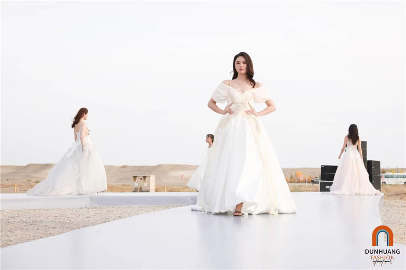 2023敦煌國際時尚周以一場在玉門關前的時尚走秀拉開帷幕。著名時尚藝術家、服裝設計大師張肇達攜手頂級婚紗品牌馬克·蝶麗奧娜帶來了60套婚紗禮服首次亮相。