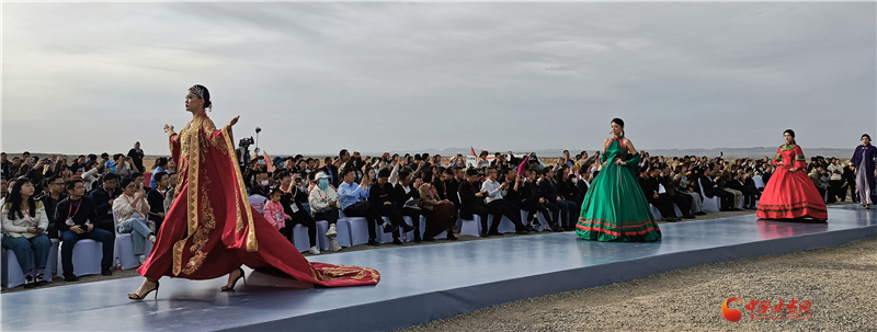 走秀的模特也表示,在玉門關下走秀很特別,行走時有清風在面頰拂過,特別有感覺,大地舞臺厚重寬廣更有時尚感。