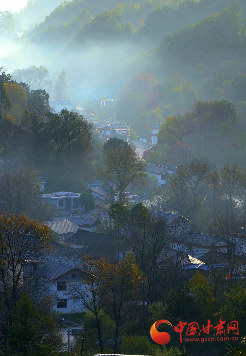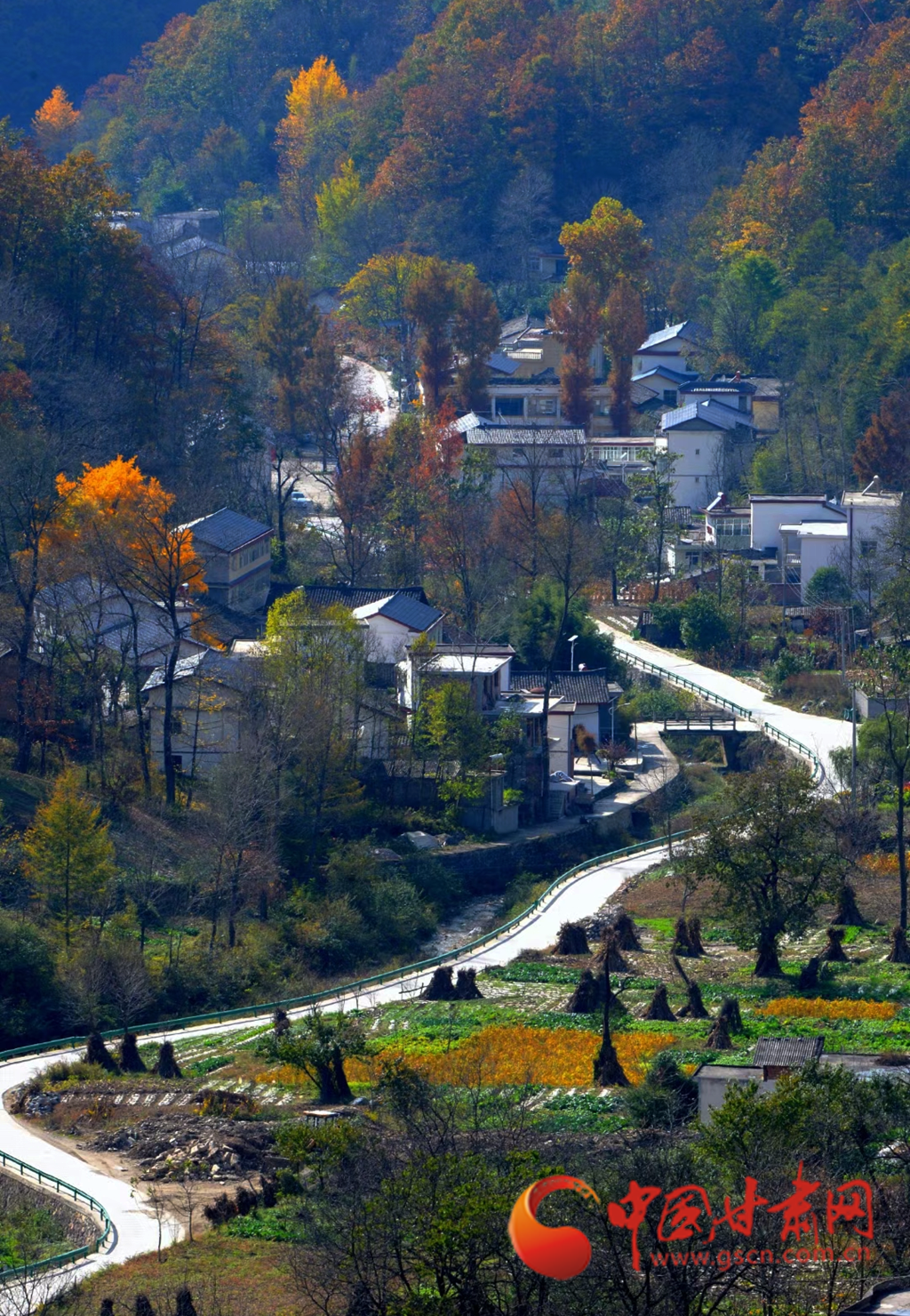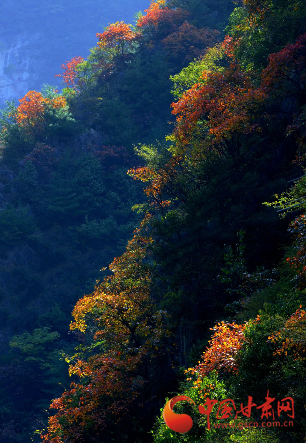 進(jìn)入十月,康縣的秋景漸入佳境,秋日的暖陽(yáng)透過(guò)薄霧灑在五彩斑斕的山脊上,滿山層林盡染、渾然一體,好似一幅油彩畫(huà)。