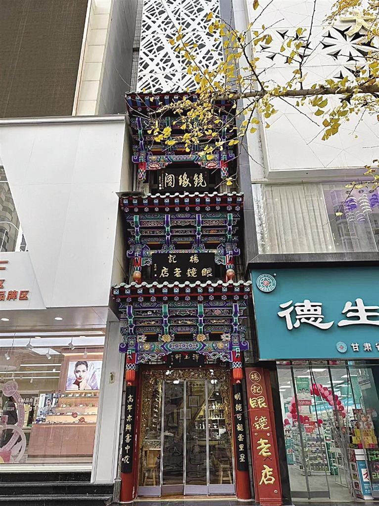 榫卯鑲嵌、手工木雕、精致彩繪、金箔貼邊,在張掖路步行街上,楊記眼鏡行的門樓招牌格外亮眼,雖然只有三四米寬的窄小門面,但店外從上而下的三塊古韻招牌彰顯出這家店的“不簡(jiǎn)單”。“最下面這塊‘澤玉軒’的招牌是我家祖輩楊澤玉開創(chuàng)這家眼鏡行時(shí)留下的字號(hào)”,楊記眼鏡行是蘭州一家老字號(hào)的石頭眼鏡售賣和維修小店,光是制作修理石頭眼鏡這項(xiàng)手藝就已經(jīng)傳到了第五代,其店鋪在二十世紀(jì)八九十年代就獲得過商務(wù)部的“中華老字號(hào)”認(rèn)可。