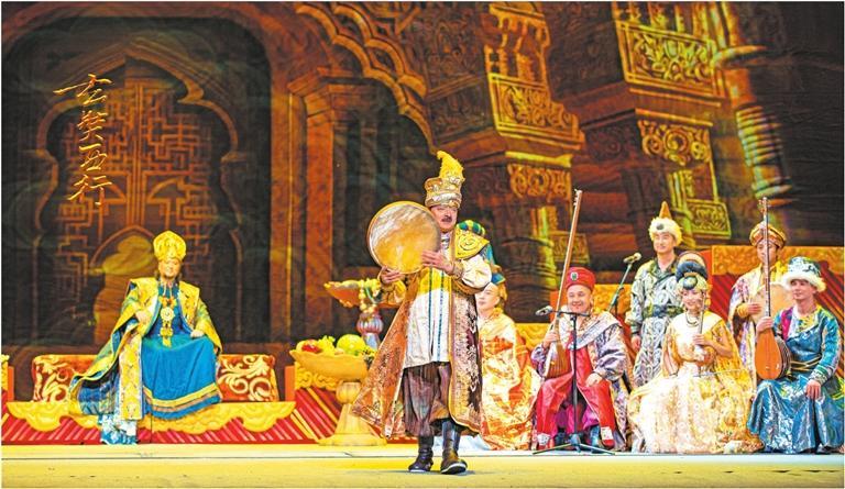 姜瑩介紹,選擇“玄奘西行”這一題材,是因?yàn)槲覀儺?dāng)代眾多的民族樂器都是從絲綢之路傳入,既要與器樂關(guān)聯(lián),還要有故事可講,大唐高僧玄奘作為人物主線貫穿全劇最為合適。玄奘西去取經(jīng),后又東返大唐,他所經(jīng)歷的一切,包含了民族、宗教、地域、音樂、人文等,為創(chuàng)作者打開了豐富的藝術(shù)想象空間。