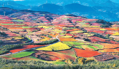 冬日艷陽下,云南省昆明市東川區(qū)紅土地鎮(zhèn)獨(dú)特的紅土地景觀,吸引各地游客前來,也帶動周圍百姓增收。