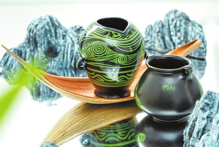 “馬家窯彩陶杯”的色彩設(shè)計也有創(chuàng)新之舉。李思成告訴記者:“為了能將古老神秘的彩陶紋樣與當(dāng)下年輕審美結(jié)合,決定選擇更貼近自然風(fēng)情的綠色線條,采用黑瓷,更能凸顯器皿的質(zhì)感。就這樣,既保留文化底蘊(yùn)的同時,又賦予了它全新的質(zhì)感,在視覺上更具有沖擊力。”