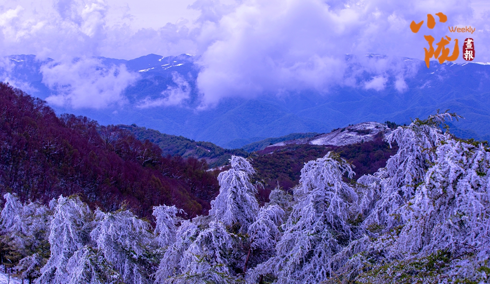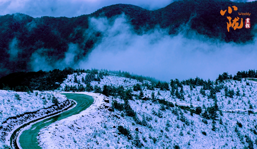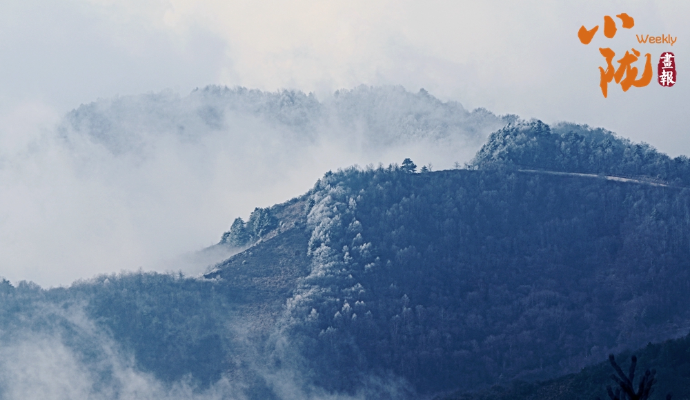 白雪覆蓋的關(guān)山,煙雨蒙蒙,云海此起彼伏,山峰時隱時現(xiàn),有著往常完全看不到的景色,云、霧、雪交織的美就在這里。