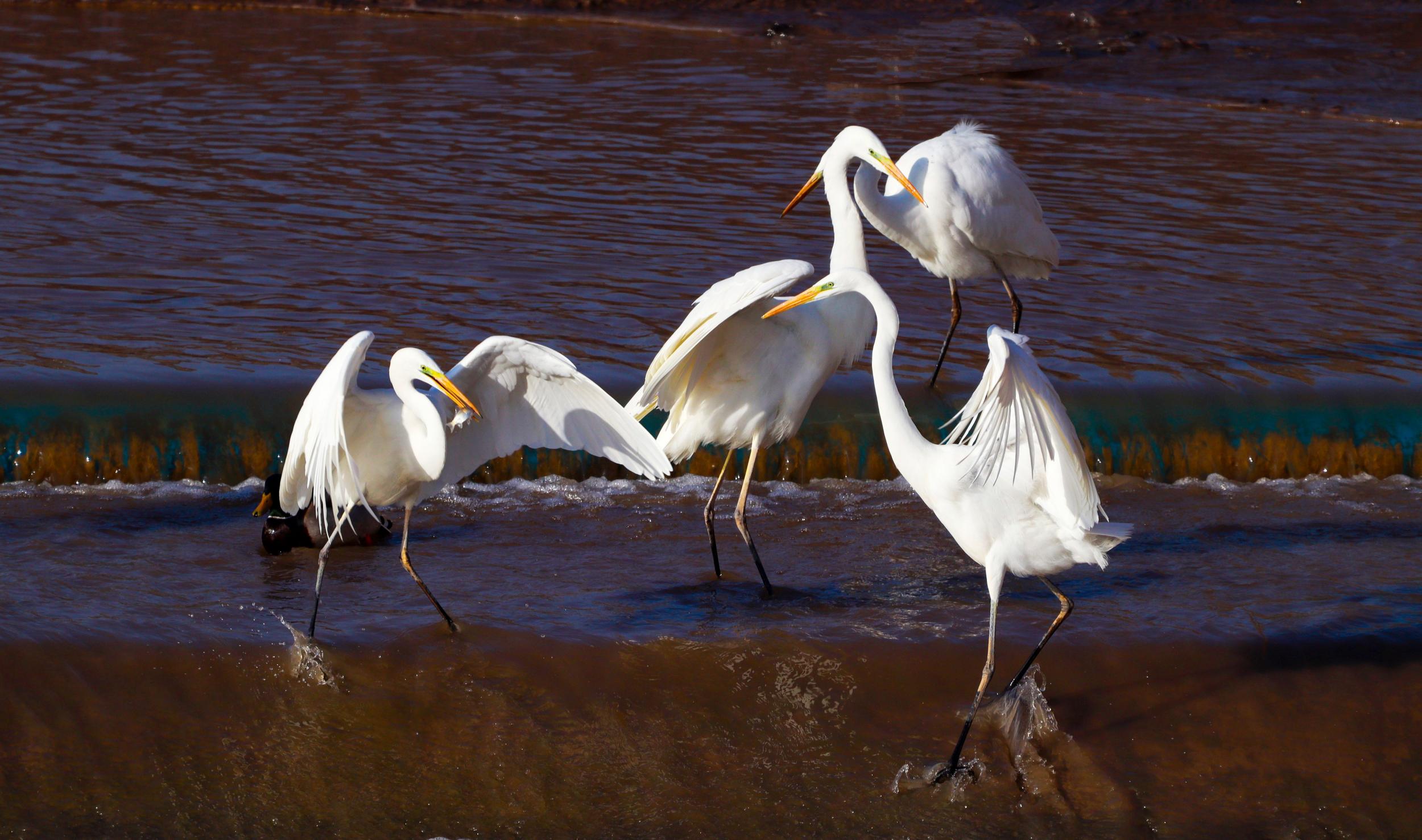 近日,在崇信縣汭河,一群白鷺時而展翅高飛,時而在水里嬉戲、覓食,構成了一幅美麗的自然生態(tài)畫卷。