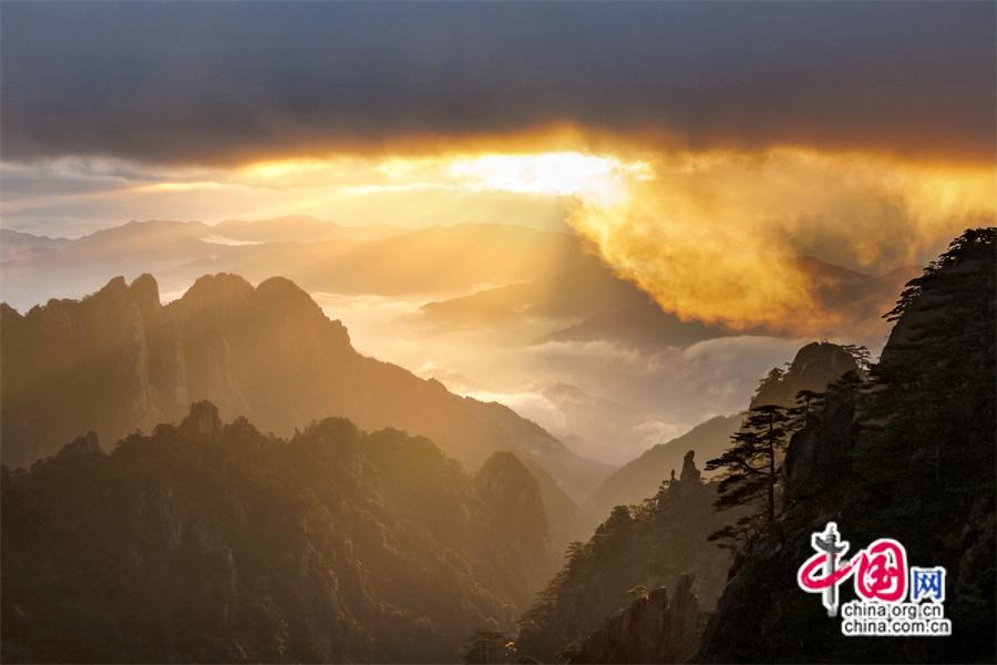 原標(biāo)題:只有一個(gè)黃山:日出霞光盡染 云霧輕舒漫卷