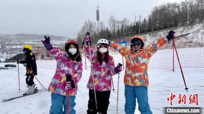 圖為臺(tái)胞青年在雪場拍照留念。王牧雨 攝