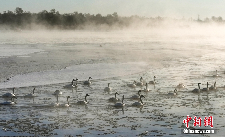 圖為天鵝在黑河暢游。(無人機照片)