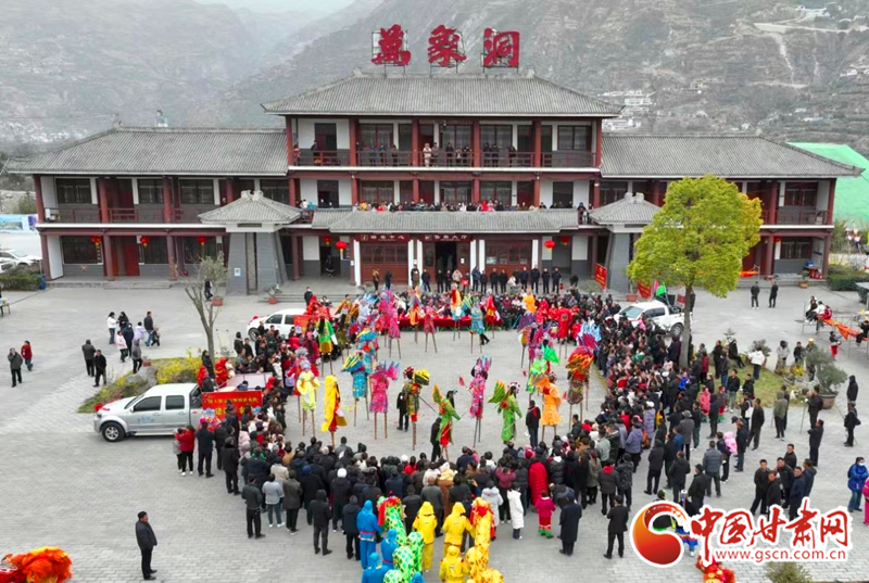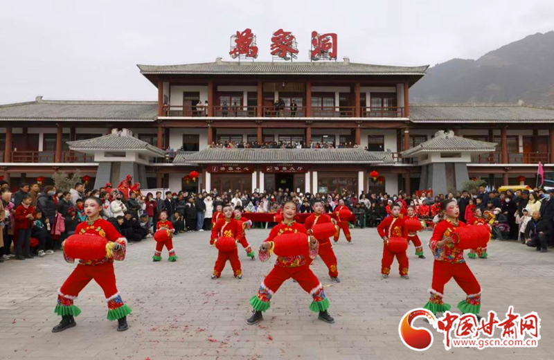 2024年2月21日,在甘肅省隴南市國家AAAA級景區(qū)——武都區(qū)萬象洞風(fēng)景名勝區(qū),當(dāng)?shù)厝罕娊M織的社火表演隊正在演出。