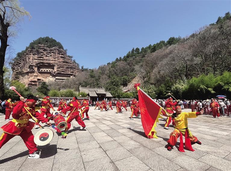3月30日9時(shí),天水伏羲廟前人潮涌動(dòng),熱鬧非凡,來自蘭州的太平鼓隊(duì)以精彩絕倫的表演拉開蘭州助力天水麻辣燙文旅推廣活動(dòng)大幕。