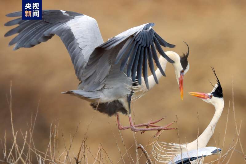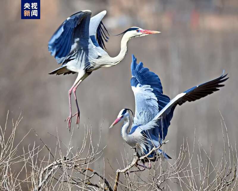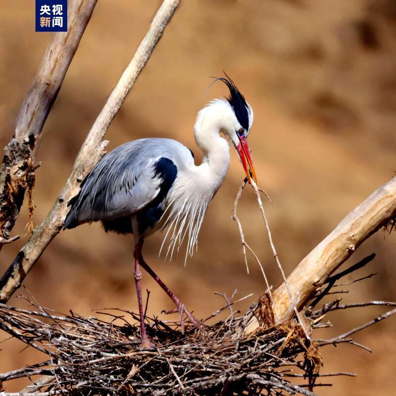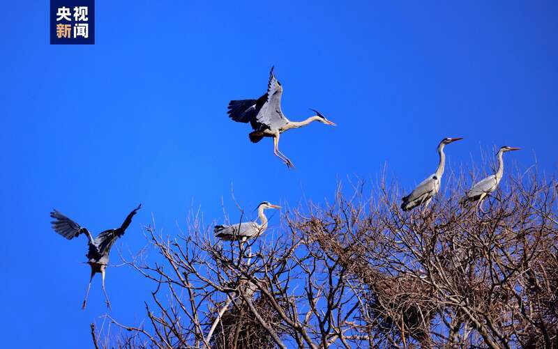 隨著氣溫回升,位于子午嶺腹地的甘肅省慶陽市合水縣太白鎮(zhèn),有成群結(jié)隊(duì)的蒼鷺如約從南方飛來。它們或落在樹冠,偎依在一起,或維修著往年搭建好的巢穴,開啟新一輪的繁衍生息。子午嶺腹地是天然的生態(tài)林區(qū),近年來,當(dāng)?shù)鼐C合實(shí)施固溝保塬、退耕還林、植樹造林等工程,森林覆蓋率達(dá)到69.82%,引來眾多珍稀鳥類繁衍生息。(總臺(tái)記者 焦?。?/p>