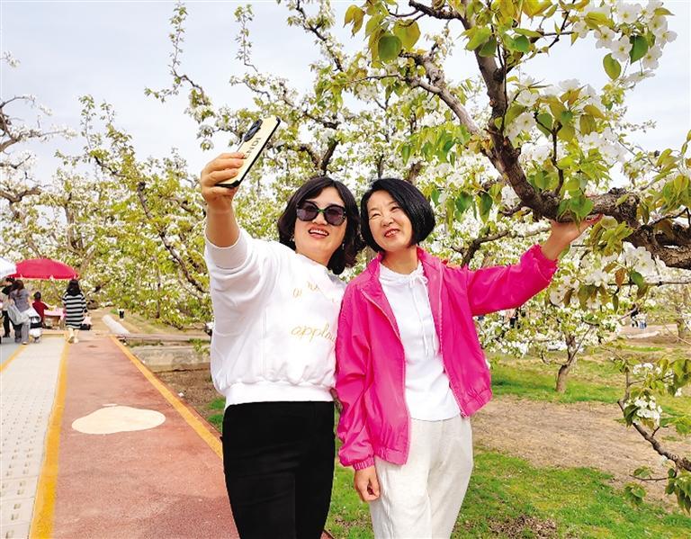 在什川萬畝梨園,梨花絢麗綻放,宛如繁星,點(diǎn)綴在枝頭,美麗動人,置身梨園,宛如人間仙境。記者在梨園內(nèi)看到,前來賞花的游客身著艷麗的服裝,三五結(jié)伴,興高采烈地徜徉花海,共享這春日美好時光。同時還有不少游客拿出手機(jī),紛紛拍照打卡留念。