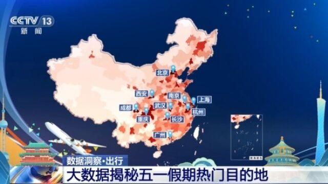 這個(gè)假期人們都將奔赴哪里?這是一張根據(jù)12306平臺(tái)4月30日的火車票預(yù)售數(shù)據(jù)繪制的目的地?zé)崃D,顏色越深表示到達(dá)的旅客數(shù)量越多。北京、廣州、上海、成都、武漢、西安、杭州、重慶、南京、長(zhǎng)沙等中心城市依然是吸引旅客到達(dá)量最多的城市。