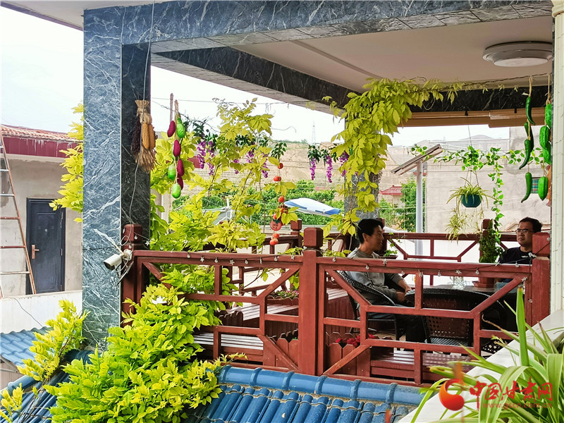 在梨園掩映中,上車村村民彭霞清家的小院安靜美好。進入六月,梨園也進入一年當(dāng)中生命力最旺盛的時節(jié),遮天蔽日的掩蓋讓這里成為蘭州人避暑的絕佳選擇,彭霞清也正在為即將到來的避暑旺季做準(zhǔn)備。