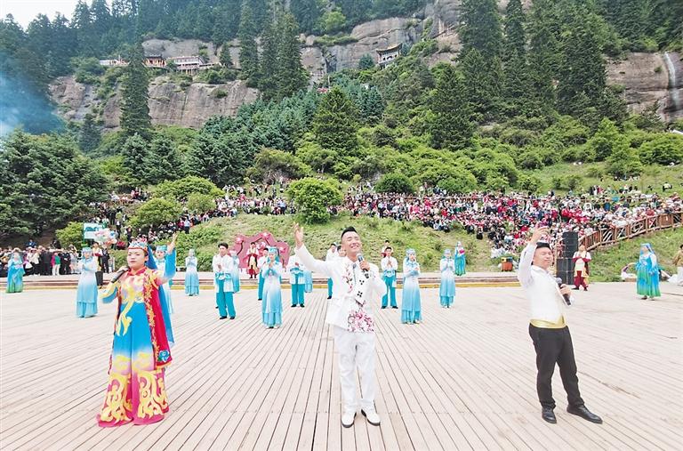 《恭喜曲》《我在家臨夏》《尕老漢》《園子里長的綠韭菜》《尕妹門前浪三趟》……巡演途中,花兒歌手輪番演唱,讓游客沉浸式感受松鳴巖花兒會的獨特魅力。