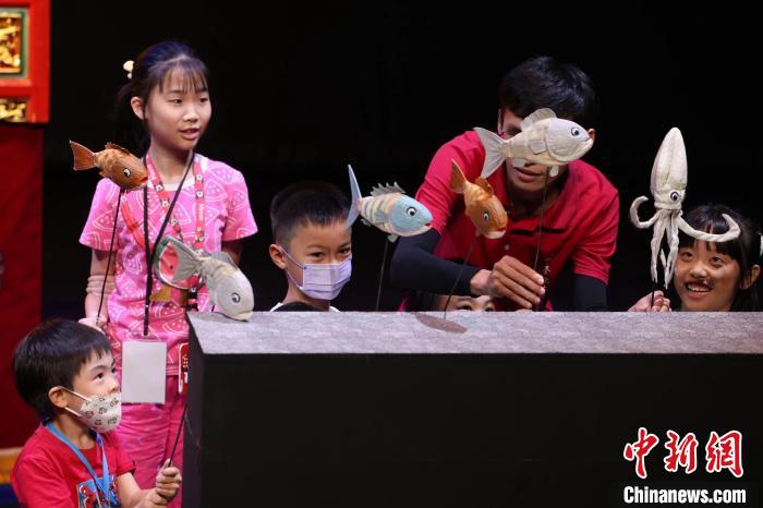 7月10日,臺灣傳統(tǒng)藝術(shù)中心2024兒童戲曲巡演活動“請囡仔來看戲”在臺北起跑。圖為臺北木偶劇團在記者會現(xiàn)場為兒童表演。(臺灣傳統(tǒng)藝術(shù)中心 供圖)