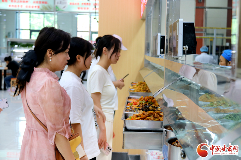 新生和家長(zhǎng)在食堂就餐