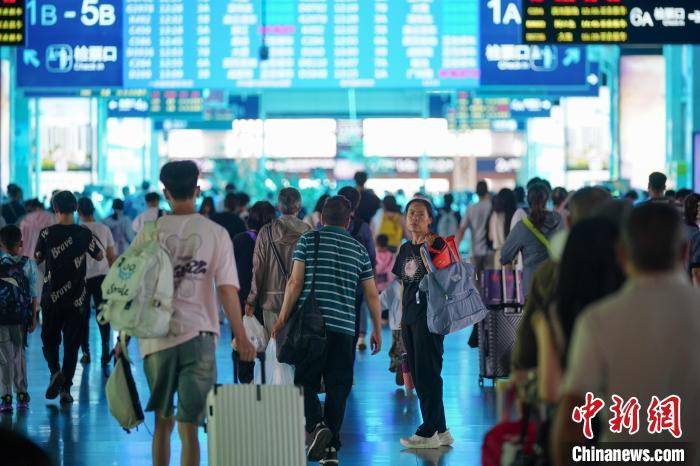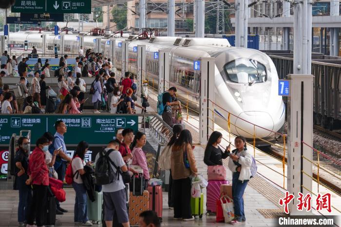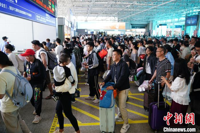 8月31日,云南昆明,旅客在昆明站候車(chē)前往西雙版納方向。當(dāng)日,為期62天的中國(guó)鐵路暑運(yùn)結(jié)束。中新社記者 劉冉陽(yáng) 攝