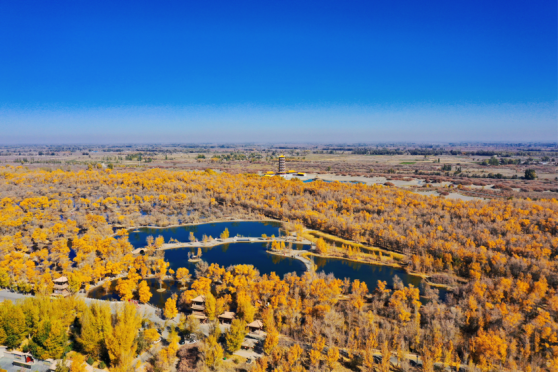 原標(biāo)題:寶藏甘肅|碧云天黃葉地 在金塔胡楊林領(lǐng)略絕美秋色