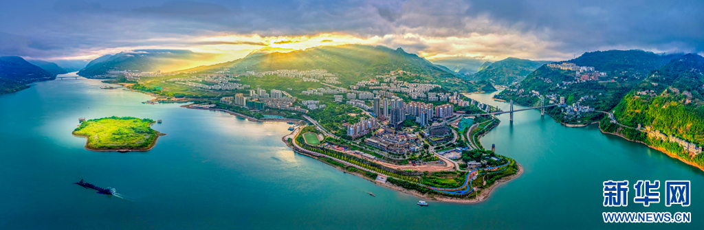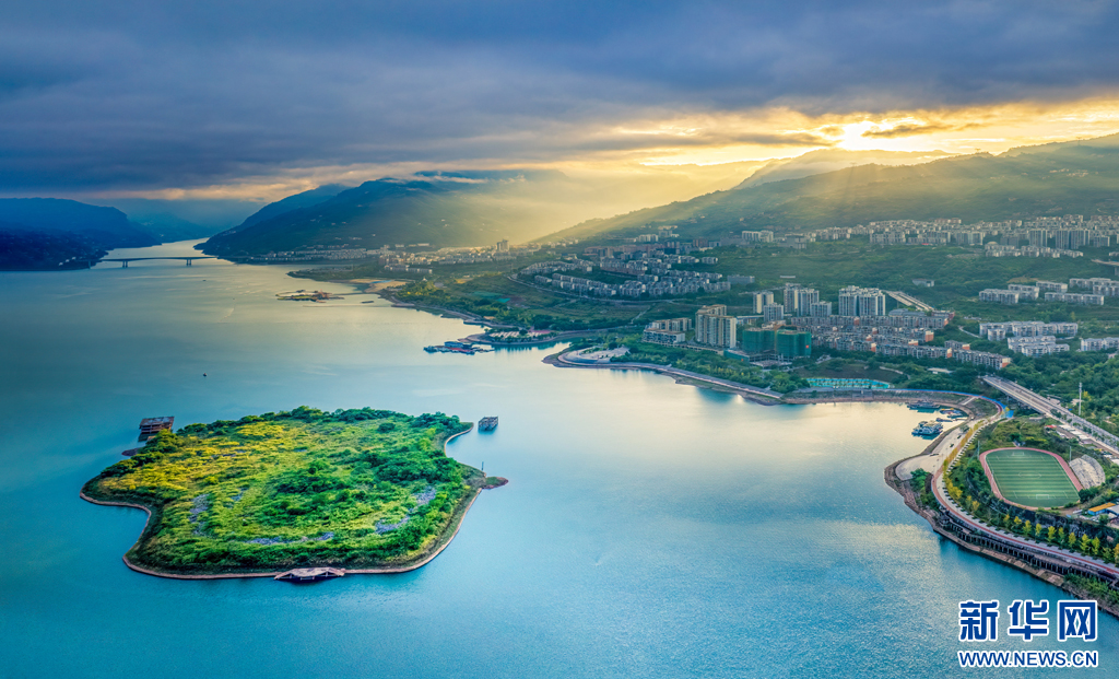 朝陽映襯下的江畔小城綏江,水清岸綠景美(10月23日攝)。新華網(wǎng)發(fā)(曾三東 攝)
