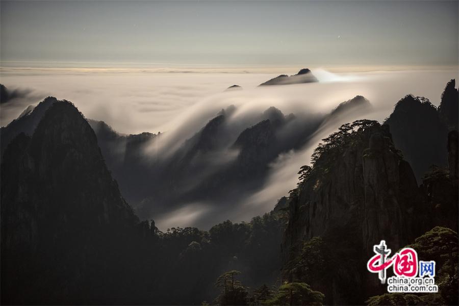 原標(biāo)題:只有一個(gè)黃山:最美“瀑布云”凌空而下(組圖)