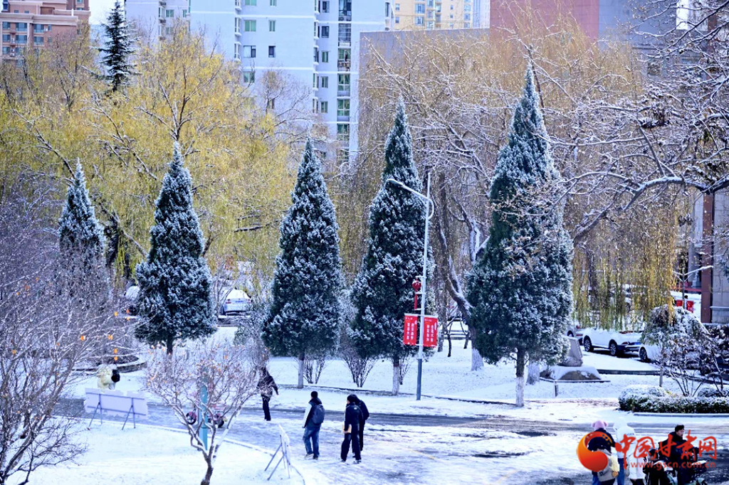 初雪似無數(shù)精靈,校園樹木如瓊枝玉葉,每一片雪花都融在蘭州城市學院的角落里。