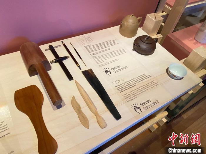 荷蘭世界博物館內(nèi)展出的紫砂壺和制作工具。(受訪(fǎng)者供圖)