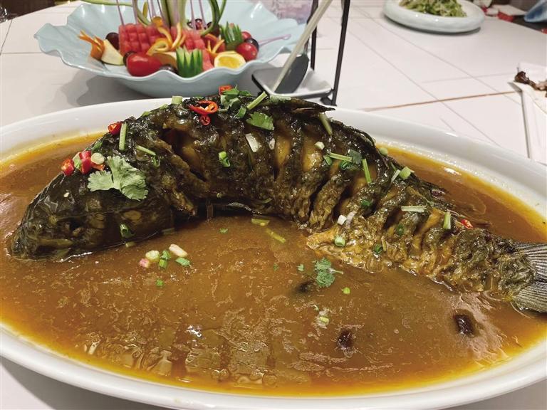 “黃河大鯉魚、蘭州糟肉、麻辣肉、老蘭州燴菜這些都是隴菜中的必點菜式!”董巖向記者介紹了店里的招牌菜:黃河宏豐鯉魚王,魚肉質(zhì)鮮嫩細膩、營養(yǎng)豐富,在隴菜傳統(tǒng)烹飪技法中,紅燒黃河鯉魚堪稱經(jīng)典做法,搭配廚師精致的排盤,色澤紅亮的魚身與青蔥翠綠相互映襯,香氣撲鼻,令人垂涎欲滴。蘭州糟肉在隴菜中是一道極具特色的傳統(tǒng)名菜,每逢佳節(jié),它更是成為蘭州人家餐桌上必不可少的一道佳肴,承載著濃濃的節(jié)日氛圍和家的味道。精選肥瘦相間的五花肉,經(jīng)過刀工、糟鹵腌制、放入蒸鍋中蒸熟等一系列操作,肉質(zhì)變得軟爛,肥而不膩,糟香四溢。當入口品嘗時,那濃郁的糟香味瞬間在口中散開,與五花肉的醇厚口感完美搭配,相得益彰,讓人回味無窮。