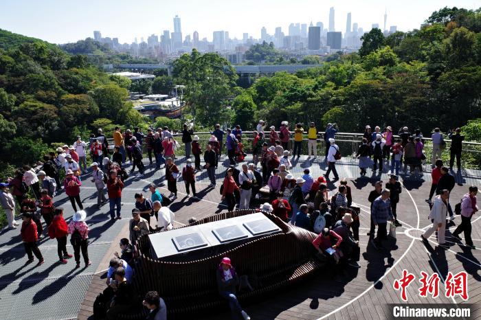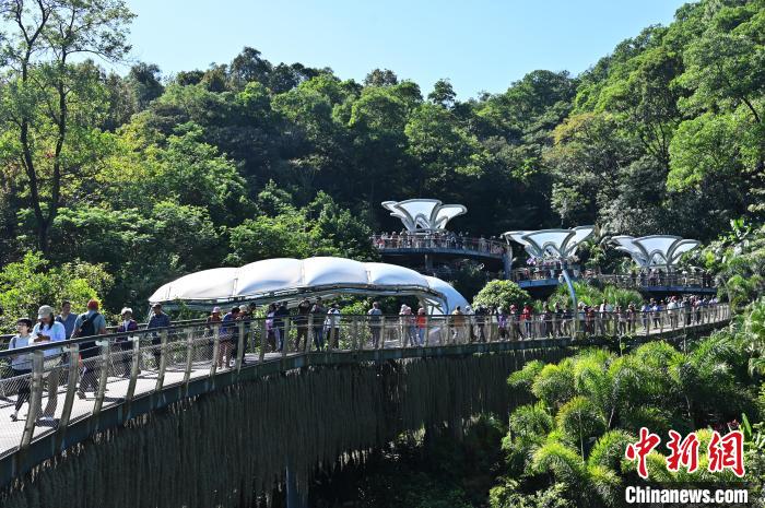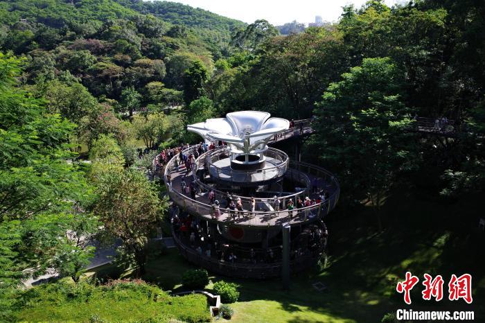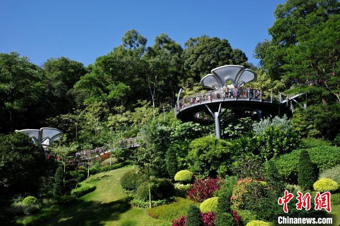 11月29日,廣東廣州,云蘿植物園正式開(kāi)園,游客漫步在空中園林棧道“木棉道”。中新社記者 陳楚紅 攝