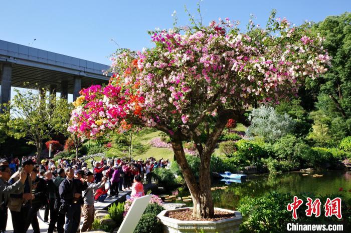 11月29日,廣東廣州,云蘿植物園正式開(kāi)園,簕杜鵑專(zhuān)類(lèi)園吸引游客賞花拍照。中新社記者 陳楚紅 攝