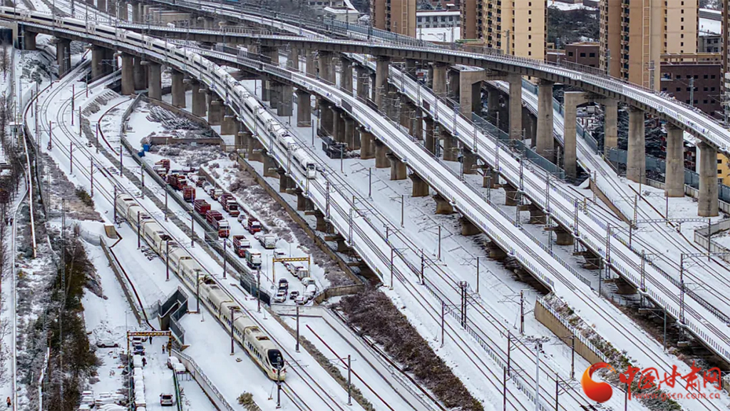鐵道線宛如銀色的綢帶穿城而過,將城市的喧囂與遠方的寧靜巧妙地連接在一起。一列列火車整齊地排列在鐵軌上,宛如一條條“鋼鐵巨龍”,靜靜地蟄伏,等待著喚醒它們的汽笛??焓詹剡@屬于冬日鐵路的專屬浪漫!
