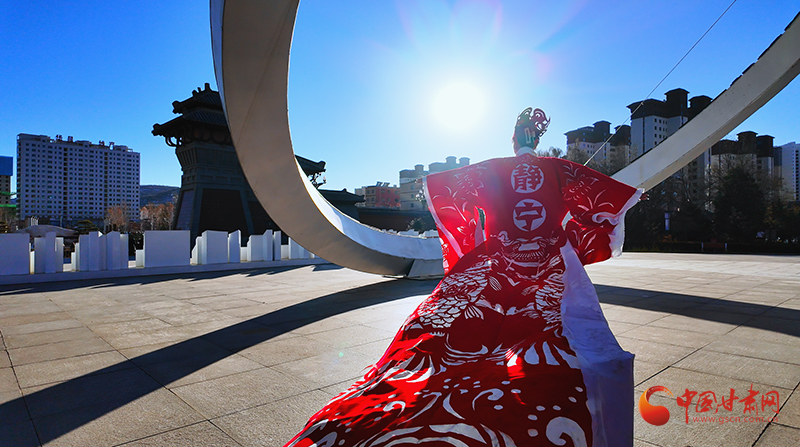 在靜寧縣成紀(jì)文化城里,兩名模特身著“盛裝”翩翩起舞,盡情展示自信與優(yōu)雅,緩緩走動(dòng)間,靜寧蘋(píng)果、靜寧果農(nóng)等元素裝飾的紅色剪紙服飾隨風(fēng)搖曳,讓國(guó)家級(jí)“非遺”——中國(guó)剪紙也流動(dòng)了起來(lái)。這精彩的作品展示,來(lái)自仇跟銀的妙手。