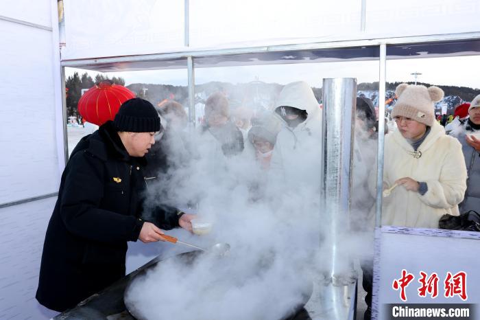 除了豐富的冰雪游樂項(xiàng)目,北極村七星廣場還設(shè)有非遺民俗文化展區(qū)和東北特色美食區(qū),讓游客們?cè)趨⑴c冰雪活動(dòng)的同時(shí),還能欣賞樺樹皮畫、手工編織等具有地方特色的非物質(zhì)文化作品,品嘗江水燉江魚、鐵鍋燉大鵝等東北特色美食。