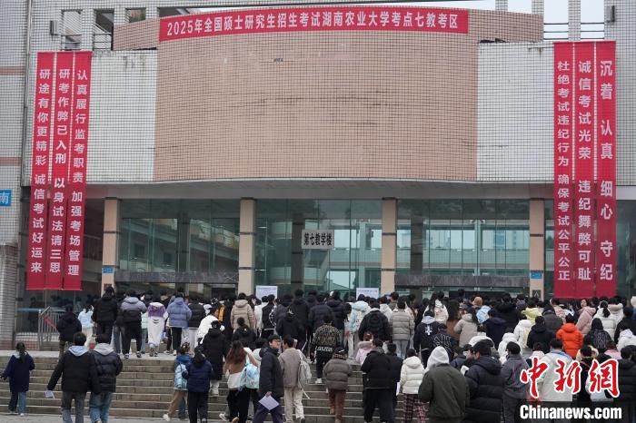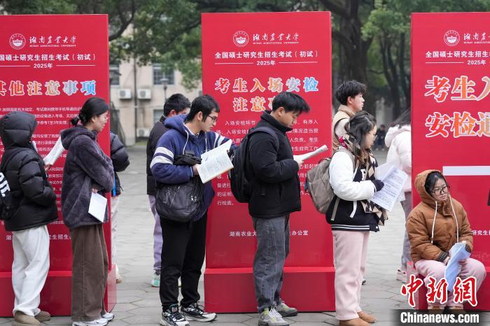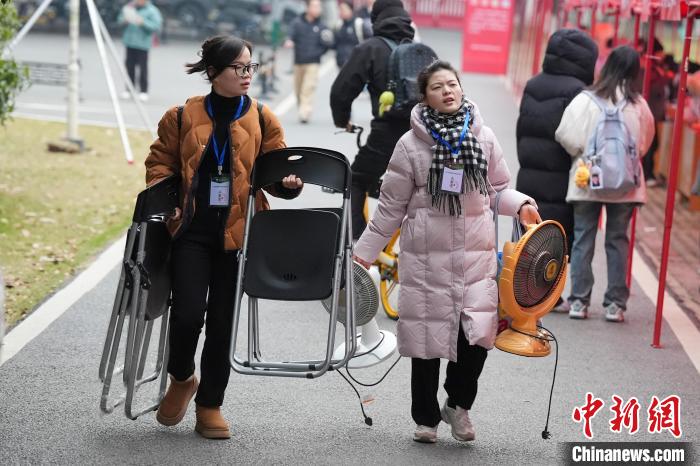 12月21日,2025年全國(guó)碩士研究生招生考試初試開考,眾多考生來到湖南農(nóng)業(yè)大學(xué)考點(diǎn)參考。據(jù)教育部數(shù)據(jù)顯示,2025年全國(guó)碩士研究生報(bào)名人數(shù)為388萬(wàn),相比去年下降50萬(wàn)人,已是連續(xù)兩年報(bào)名人數(shù)下降。圖為志愿者將椅子與取暖設(shè)備送入考場(chǎng)。中新社記者 楊華峰 攝