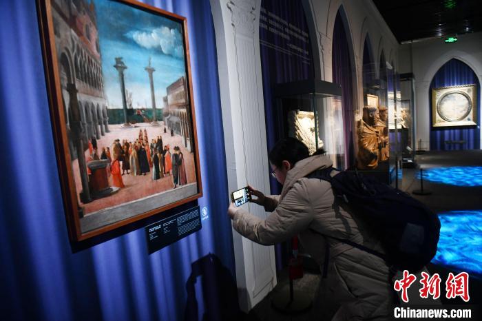12月21日,“傳奇之旅:馬可·波羅與絲綢之路上的世界”展覽在四川博物院正式面向公眾開放。圖為來自意大利威尼斯科雷爾博物館的一幅木板油畫吸引參觀者。中新社記者 張浪 攝