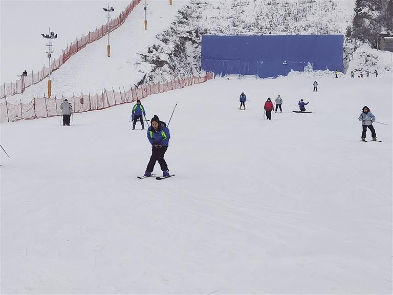接著來(lái)到興隆山滑雪場(chǎng),這里是冰雪運(yùn)動(dòng)愛好者的歡樂天地?;﹫?chǎng)經(jīng)理賈青云介紹,該滑雪場(chǎng)占地超400畝,擁有5條初、中級(jí)滑雪道,是中初級(jí)滑雪愛好者的樂園,今年全新打造的兩萬(wàn)平方米豪華“戲雪樂園”更是引人注目。“開業(yè)不到一個(gè)月,已接待游客一萬(wàn)多人,周末日均客流量超一千,平日也有四、五百人,滑雪場(chǎng)可同時(shí)容納2000人滑雪。”賈青云表示,滑雪場(chǎng)近期推出了優(yōu)惠活動(dòng),原價(jià)128元的門票現(xiàn)只需88元,包含滑雪服和存衣柜的使用。值得一提的是,經(jīng)過改造升級(jí)后的滑雪場(chǎng)加入了波西米亞風(fēng)格,設(shè)有拍照打卡地和咖啡廳,成為年輕消費(fèi)者熱衷的網(wǎng)紅打卡點(diǎn),游客在此不僅能滑雪,還能享受火鍋、烤肉等美食,體驗(yàn)別樣的冬日休閑時(shí)光。