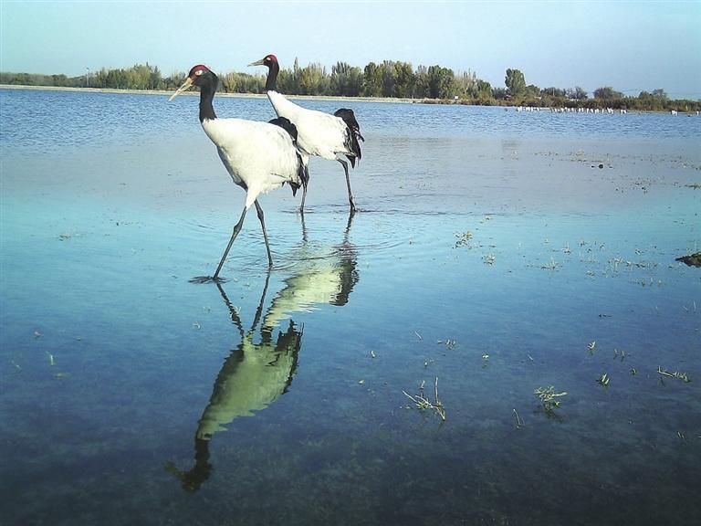 原標(biāo)題:黑頸鶴漫步甘肅雙塔濕地