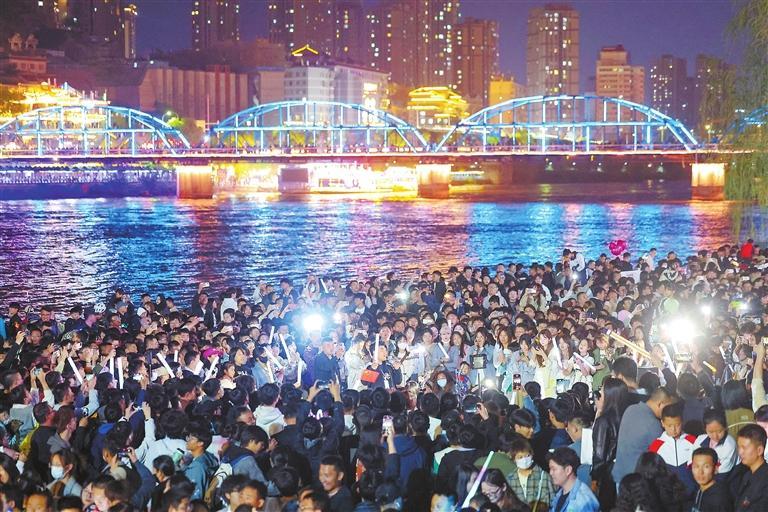 2024年夏季,在蘭州黃河風(fēng)情線近水廣場(chǎng),“黃河大合唱”火爆出圈。 新甘肅·甘肅日?qǐng)?bào)記者 馮樂凱