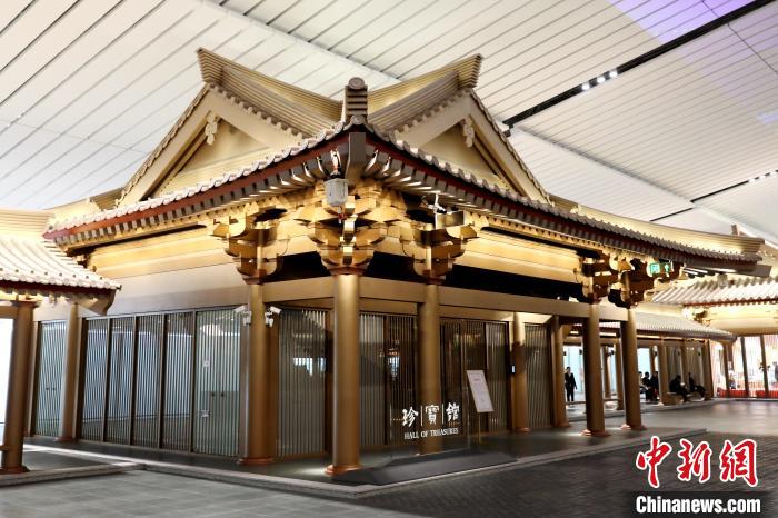 2月20日,陜西西安,西安咸陽國際機場T5航站樓正式投入運營,全球首個設(shè)置在機場內(nèi)的在地文物展示博物館正式揭牌。其中珍寶館展出了國家一級文物“秦公镈”,四方館為基本陳列展覽,展品以機場歷次建設(shè)過程中考古發(fā)掘的相關(guān)文物為主。圖為四方館內(nèi)陳列的文物。中新社記者 張遠 攝