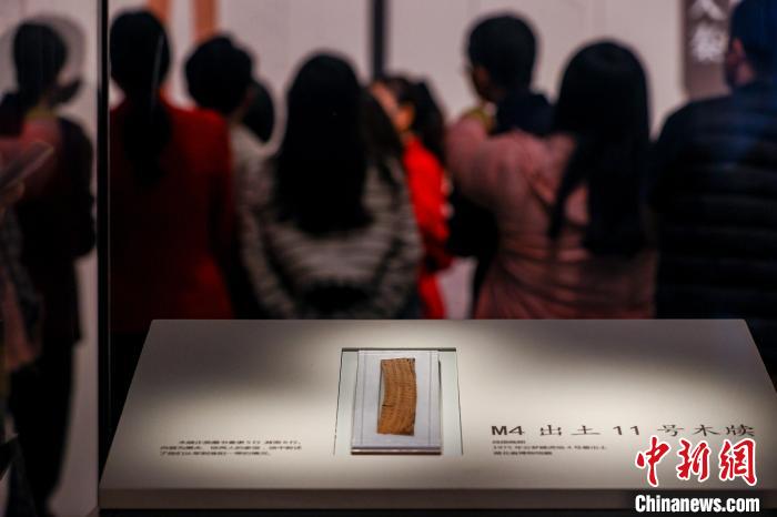 云夢睡虎地4號墓出土的木牘在湖北省博物館展出。中新社記者 張暢 攝